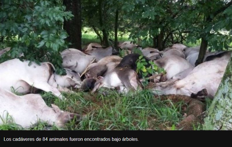 Una granja del sureste de Brasil sufrió un inusual y terrible incidente: una tormenta eléctrica mató a 84 de sus vacas y toros.