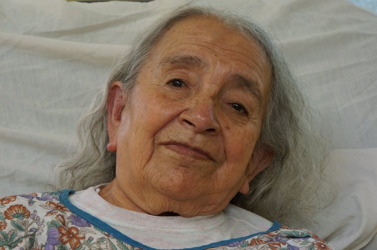 Hace cuatro años murió su único hijo, a raíz de eso le dio un infarto, que provocó que se le quebrara la columna, la clavícula y la costilla; fue ingresada al asilo y desde entonces permanece allí. No tiene más familiares.  Trabajó por 30 años haciendo limpieza en una casa de la zona 1.