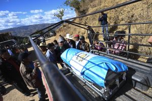 La solemnidad de los eventos se cortaba con el llanto y lamentos de hombres y mujeres, como Zaidi Aguilón, quien abrazó el féretro en el que se encontraba su esposo, Iván Gudiel Pablo Tomás, y que, como el resto de ataúdes de las víctimas, estaba cubierto con una bandera de Guatemala.