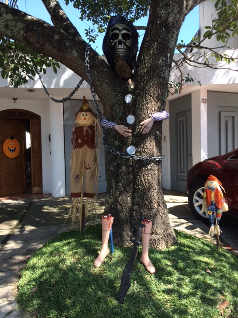 Una familia de la colonia El Bosque, zona 12, entusiasta de la noche de brujas, decidió decorar un árbol con un curioso disfraz que llamó la atención de los vecinos.