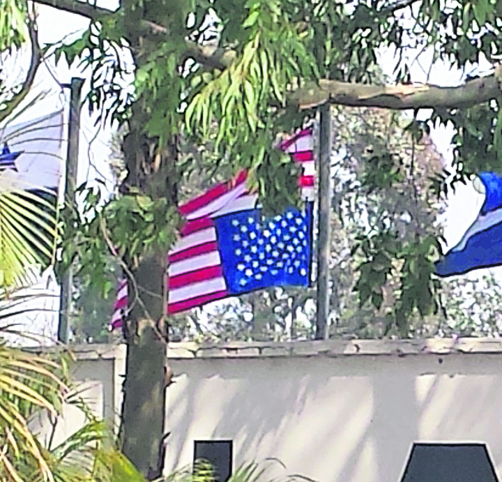 Lector captó esta imagen, en días recientes, de la bandera de Estados Unidos puesta de cabeza, en la sede de la Asociación Nacional de Ecuestres.