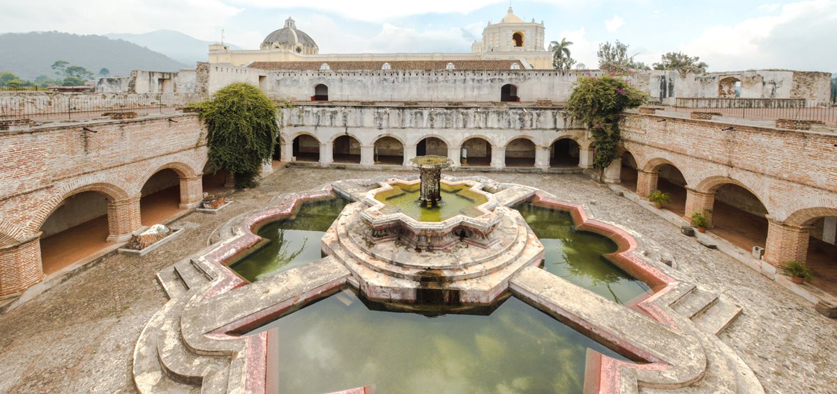 Fotografía del templo y ruinas del Convento La Merced, de Antigua Guatemala.