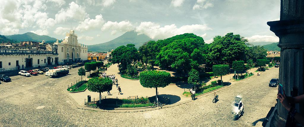 La catedral de San José, frente al Parque Central de la Antigua Guatemala, ofrece una vista llena de elegancia, historia y belleza.
