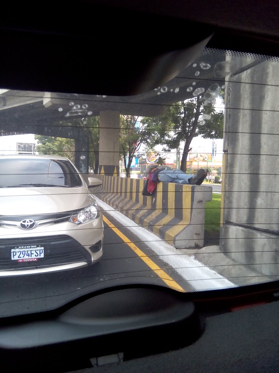 Un hombre se olvidó del mundo sobre un camellón de la calzada Roosevelt.