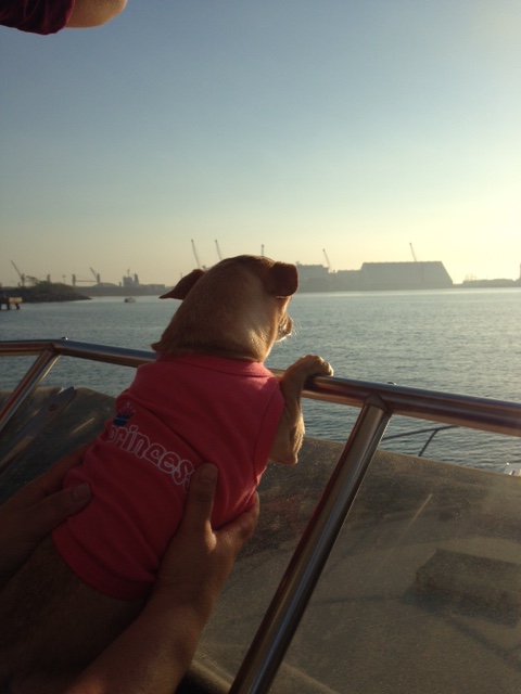 Un can acompañó a su dueña durante un paseo de pesca en el puerto de Iztapa, Escuintla. Juntos pudieron observar el amanecer.