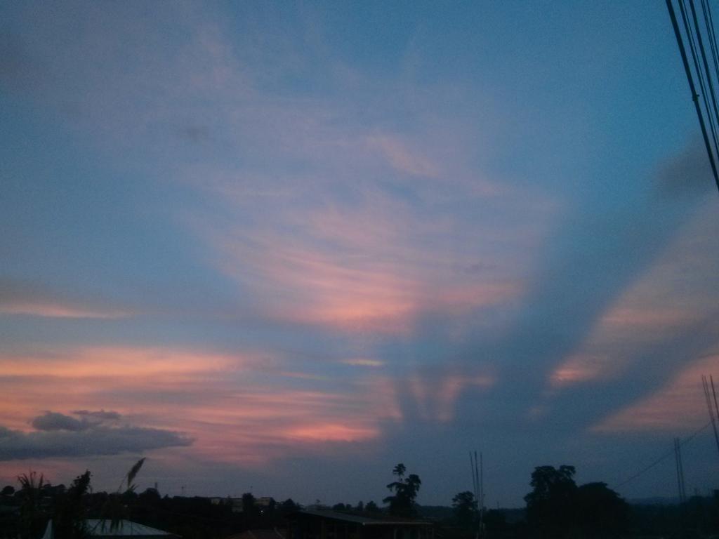 En el cielo se pinta un nuevo ocaso con bellos colores, mientras el sol se oculta entre los montes del horizonte.