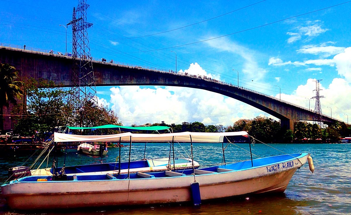 Desde las aguas de Río Dulce, Izabal, se puede observar la longitud del puente que comunica este departamento con Petén.