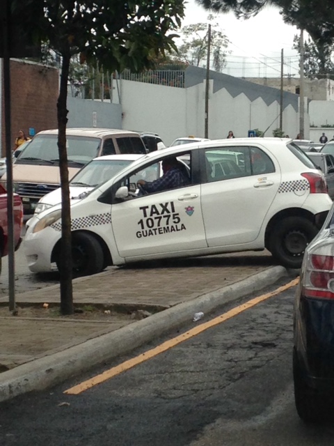 Un taxista captado en la calzada San Juan hizo su ley al subir a un arriate para retornar.