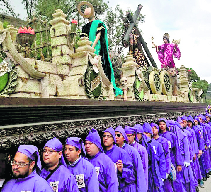 Tradicional procesión de Jesús Nazareno de la aldea de Santa Inés, que recorrió ayer las calles de Antigua Guatemala.