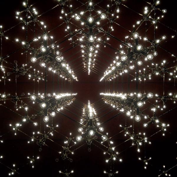 La sala Efraín Recinos, del Centro Cultural Miguel Ángel Asturias, recibe a los visitantes con una hermosa y deslumbrante lámpara que decora el pasillo central.