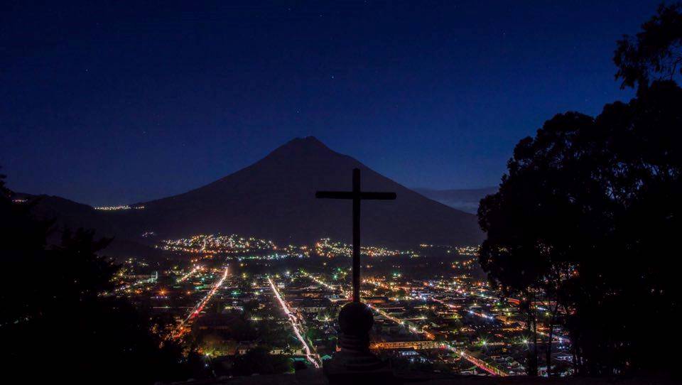 Desde el Cerro de La Cruz, Antigua Guatemala, se aprecia la belleza de la noche.