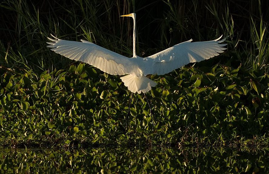 Una garza blanca fue captada cuando alzaba el vuelo sobre el humedal de Monterrico, cerca  de la Laguna de Puente Grande. Esta postal muestra los hermosos paisajes que se pueden apreciar en el país.