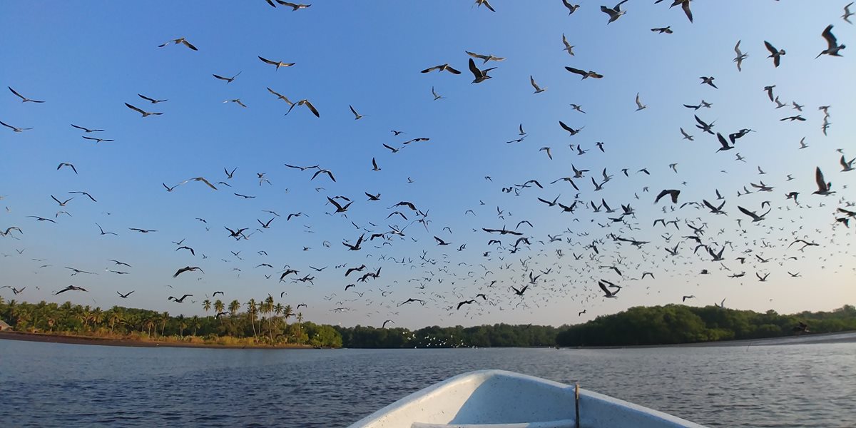 Este paseo en lancha en el canal de Chiquimulilla, Santa Rosa, estuvo acompañado por cientos de aves que alzaron el vuelo matutino y convirtieron el cielo en un gran espectáculo.