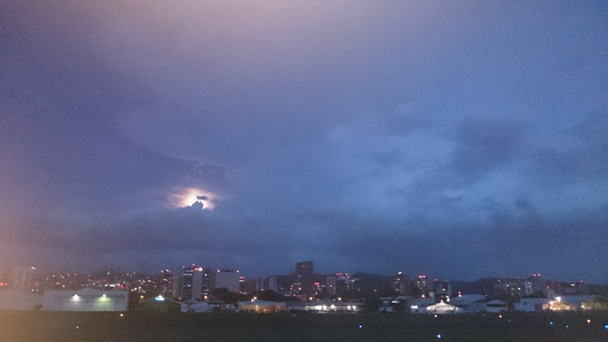 La noche cubrió la ciudad capital y el cielo mostró destellos de luz, gracias a la actividad eléctrica que provocó una tormenta.