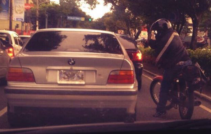 El vehículo que se encontraba en el tráfico de la 7a. avenida de la zona 9, fue tomado por asalto robo por un motorista que apuntó con un arma de fuego a los pasajeros.