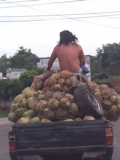 Un hombre fue captado, en la carretera de San Sebastián, Retalhuleu, cuando viajaba tranquilamente sobre decenas de cocos