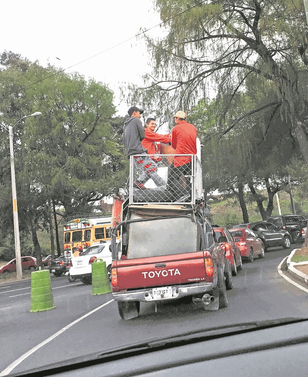 ¿Ha visto esta situación en otro punto de la ciudad? Tres personas viajaron de esta manera en un picop sobrecargado