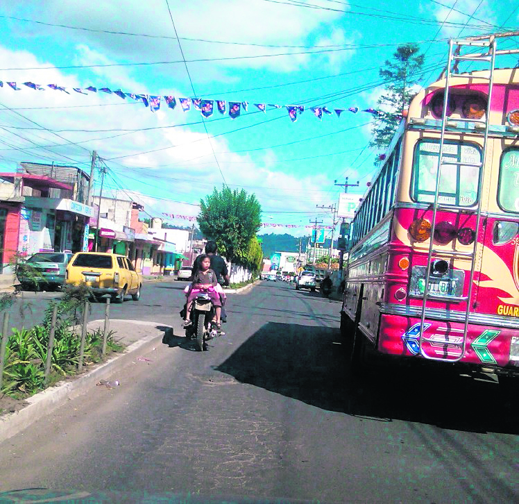 Una niña viaja en la parte trasera de una moto, en Chimaltenango, sin ningún tipo de protección y de manera arriesgada.