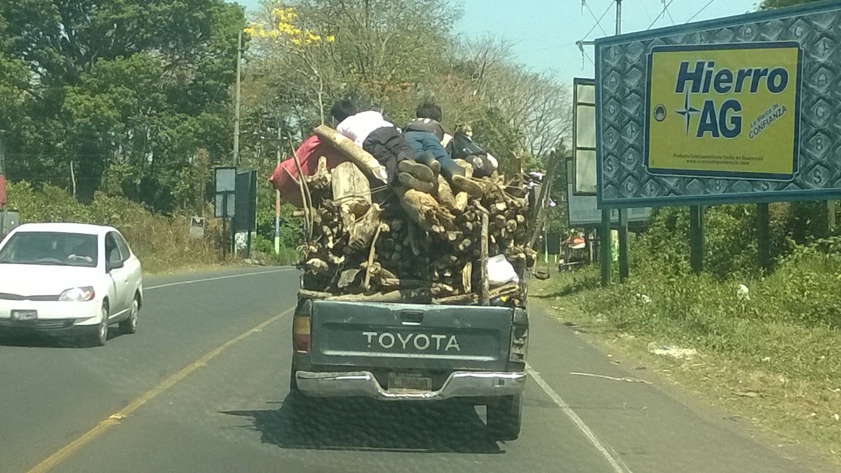 Dos menores fueron fotografiados sobre una pila de troncos y ramas que de manera peligrosa eran transportados en Retalhuleu.