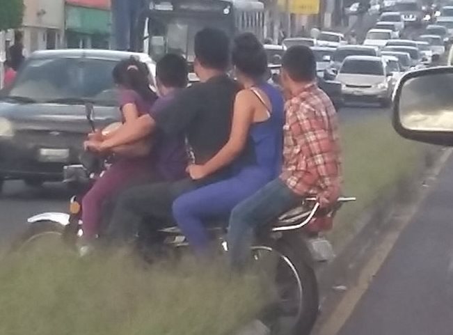 Algunos pilotos arriesgan la vida de los pasajeros, ya que además de viajar con sobrecarga, cometen este tipo de imprudencias. Vea esta foto tomada en Ciudad Real, zona 12.