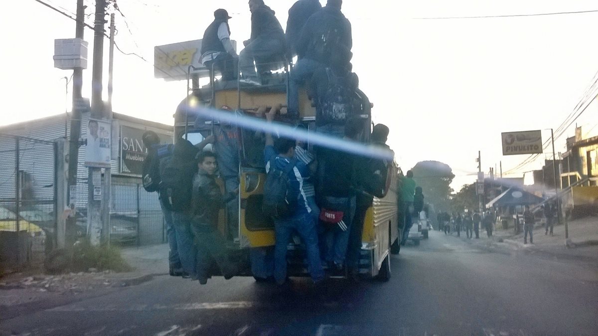 Así viajan los usuarios del transporte público todos los días. Se juegan la vida por movilizarse en el único servicio a su alcance.