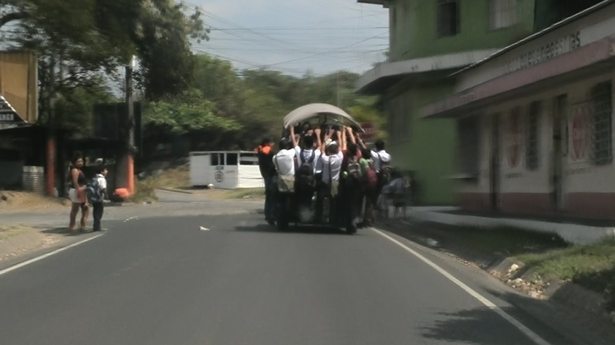 El piloto de una unidad de transporte en Mazatenango permitió que varios estudiantes abordaran la unidad sin medir las consecuencias.