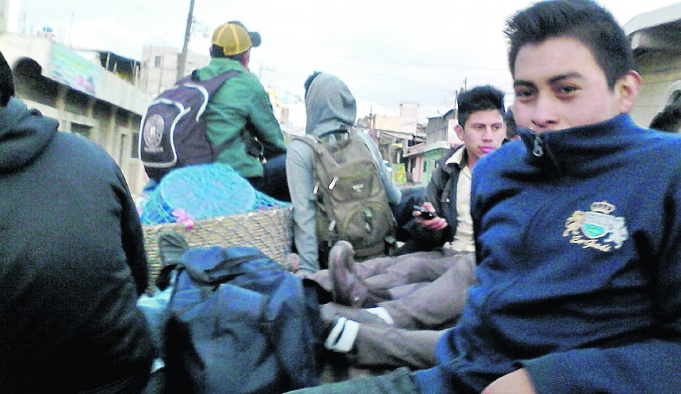Así se transportan las personas en buses de Chimaltenango hacia Patzún después de las 17 horas.