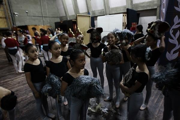 Caterine Medina es menuda, delgada. En su cuerpo de niña se advierte la figura estilizada que poseerá  cuando llegue ese momento ansiado de sustituir las zapatillas de media punta por las de punta. Pero, mientras eso sucede, reconoce que antes de  ser el hada de azúcar deberá enfrentarse con el reto de enderezar las enormes orejas de su traje de ratón, que durante algunos momentos no le permitirán ver. “¡Hace mucho calor!”, comenta Valentina Palacios, de ocho años, a quien sus compañeras auxilian para ponerse la malla mientras asienten con la cabeza.