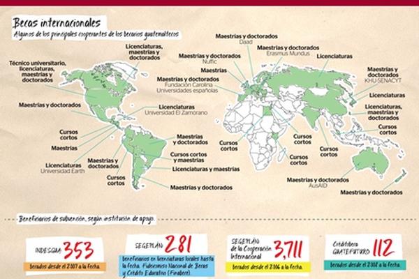 A falta de cifras, Luis Édgar Arenas, director del Instituto para el Desarrollo de la Educación Superior (Indesgua), estima que el total de becas obtenidas por connacionales para grados superiores, dentro de nuestras fronteras o fuera de ellas, no supera las mil cada año. Una mínima porción cuando se calcula una población universitaria de aproximadamente 300 mil.