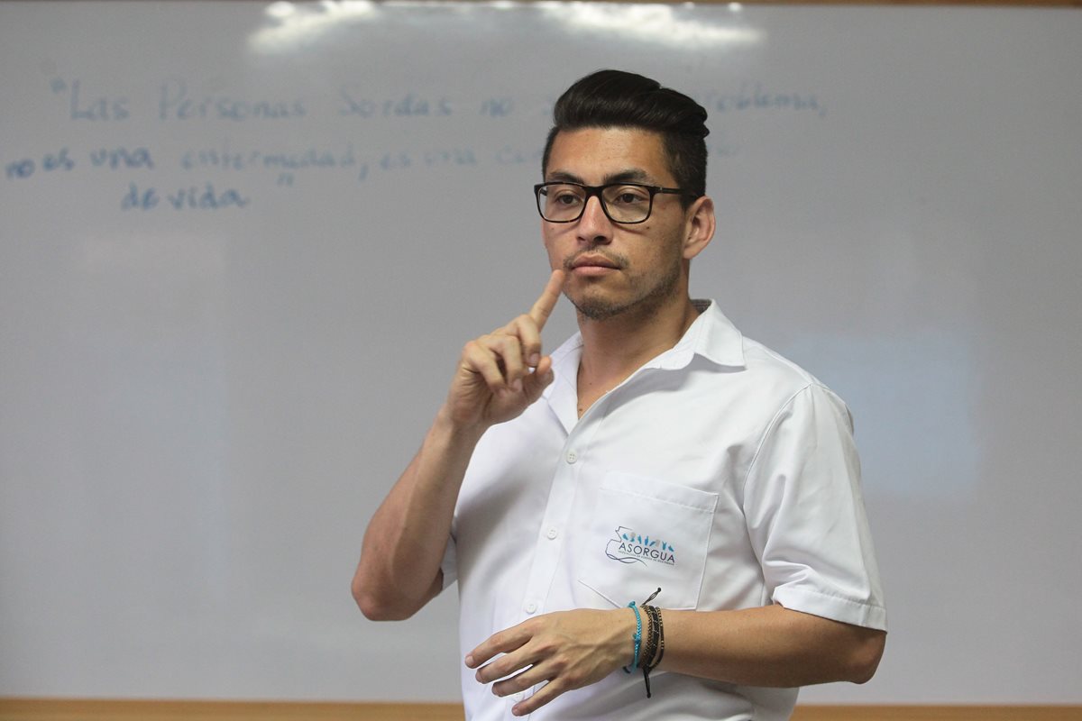 En la actualidad no hay una formación académica acerca de la lengua de señas en Guatemala. Yo entré a trabajar aquí en el 2007 y la diferencia es que nosotros en casa manejamos un lenguaje más coloquial de comunicación básica, pero al venir acá debo conversar sobre temas de educación, política, justicia, trabajo y convivir con más personas que tienen otros conocimientos.