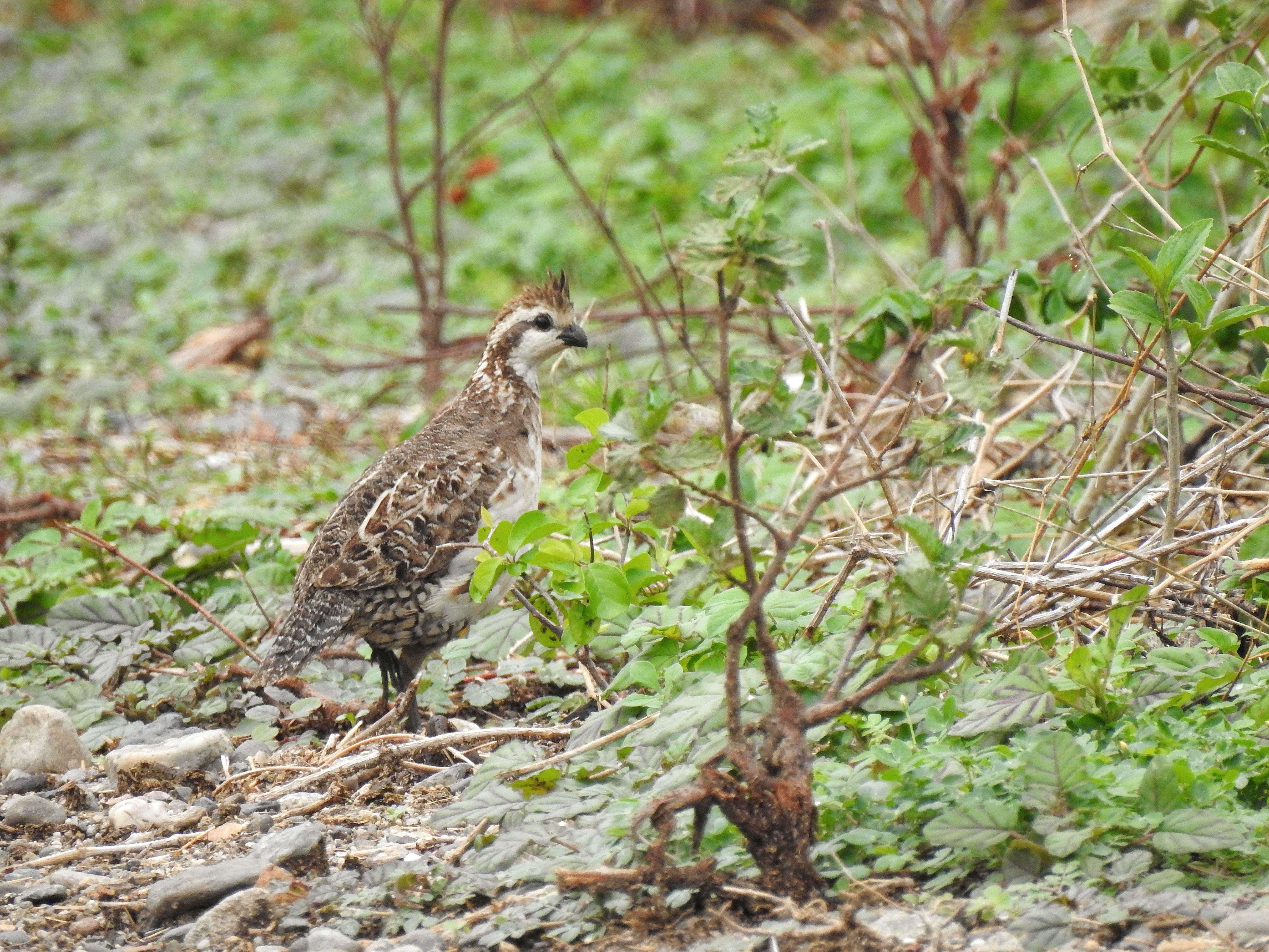 Esta codorniz pequeña y regordeta, de cola corta con una fina cresta en la cabeza y cara rojiza, presenta un plumaje marrón con manchas blancas y negras en la nuca. Suele vivir en áreas abiertas con pastos altos y árboles dispersos, donde busca pequeñas semillas de las que se alimenta, aunque también come pequeños frutos e insectos.