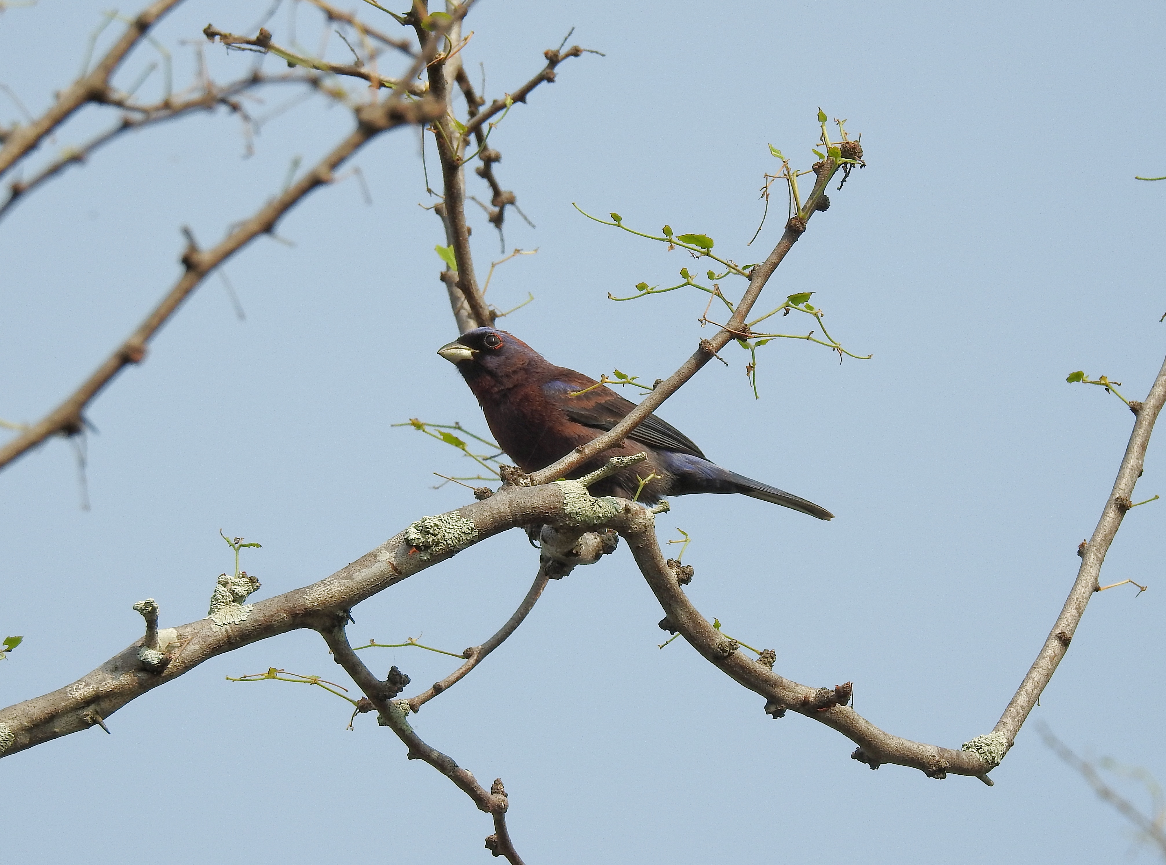 El plumaje del macho se destaca por un púrpura con rojo brillante en la nuca. También pueden tener algunas plumas rojas o azules dispersas. Se trata de un ave que reside con amplia distribución desde Estados Unidos hasta Guatemala. En nuestro país se encuentra únicamente en bosques secos, principalmente en los del Valle del Motagua.