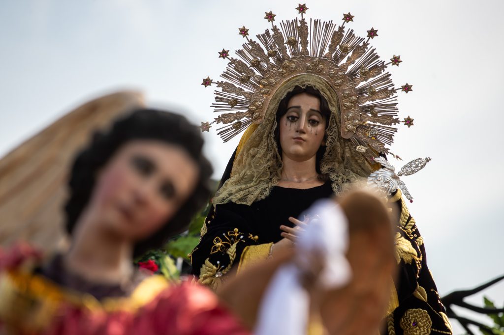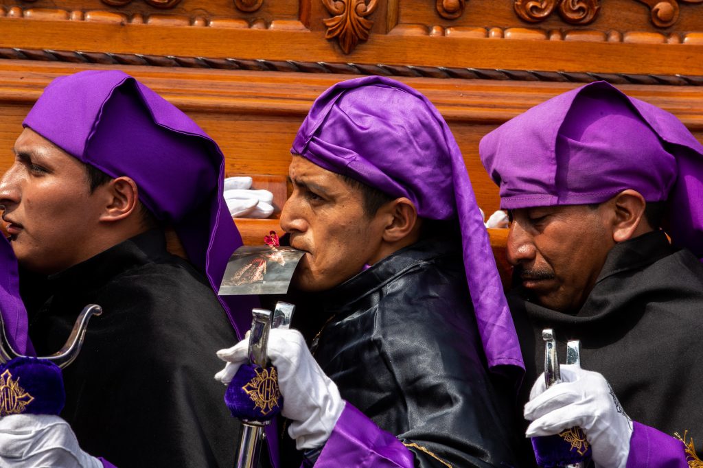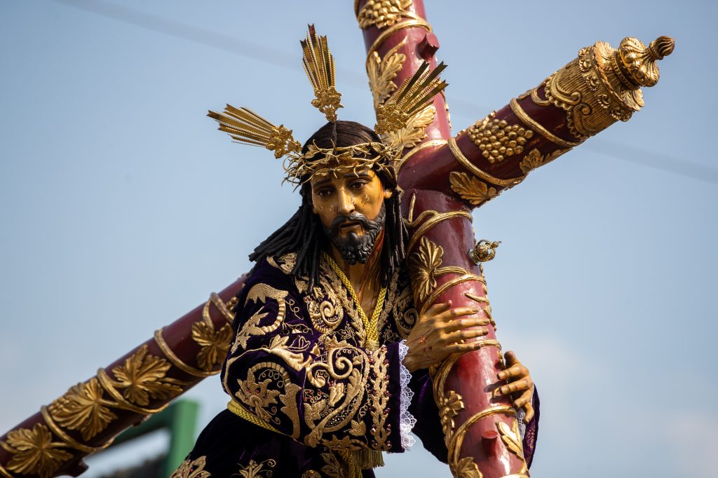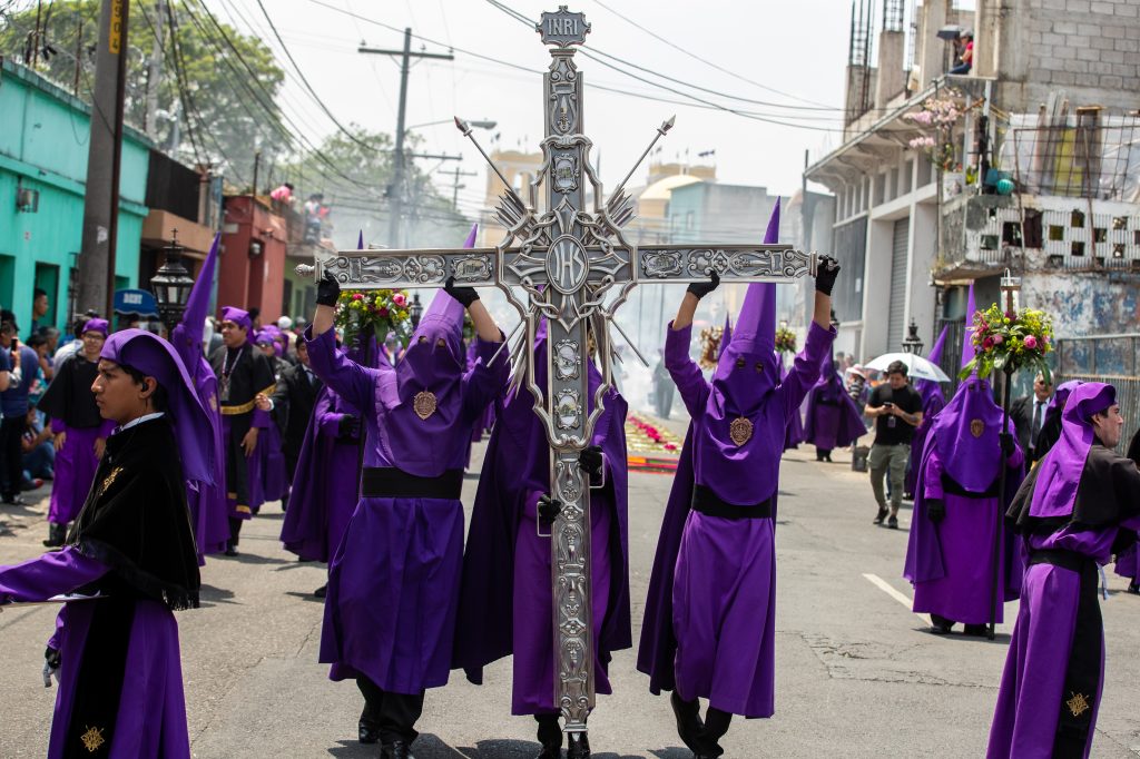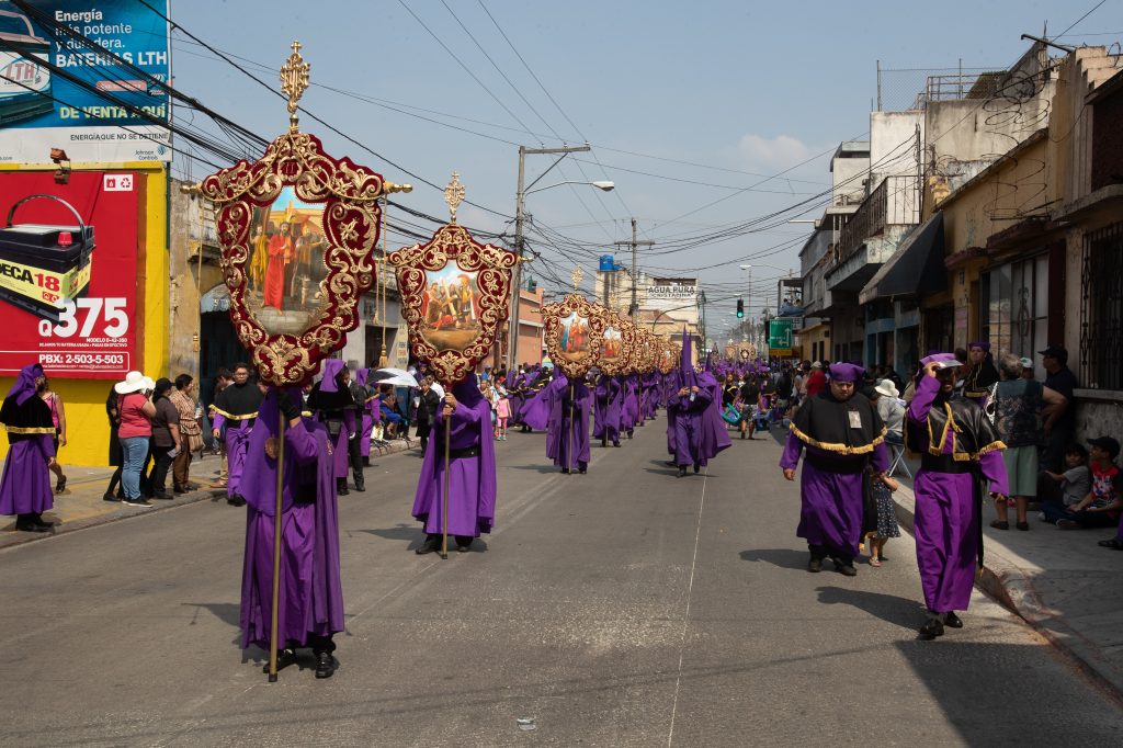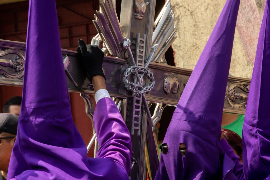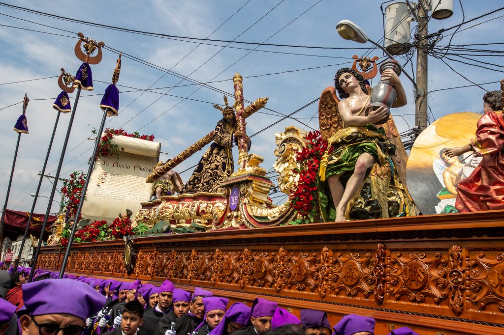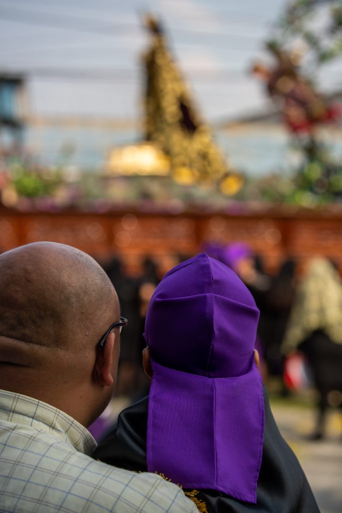 Daniel Gómez de dos años acompañado de sus padres observa la procesión. Fotografía Prensa Libre: Juan Diego GonzálezUn cucurucho en su premura para cargar en brazos la procesión, lleva en su boca el turno que le acredita para hacerlo. Fotografía Prensa Libre: Juan Diego GonzálezLa alegoría del anda fue: “Pasión de Cristo, confórtame”. Fotografía Prensa Libre: Juan Diego GonzálezAnda del Nazareno de Jesús de las Tres Potencias de la Parroquia de la Santa Cruz del Milagro.Fotografía Prensa Libre: Juan Diego GonzálezLa Cruz de Guía, es la cruz que abre camino durante el recorrido, aquí detalles de la parte posterior de la misma. Fotografía Prensa Libre: Juan Diego GonzálezEn el anda se hizo presente la sentencia que Poncio Pilato dictaminó en contra de Jesús. Fotografía Prensa Libre: Juan Diego GonzálezCruz de Guía, es la cruz que le abre camino a la procesión. Este año, dicha cruz es nueva. Tiene detalles en la parte frontal como también en la parte posterior. Fotografía Prensa Libre: Juan Diego GonzálezUn pequeño cucurucho durante el recorrido de Lunes Santo. Fotografía Prensa Libre: Juan Diego GonzálezImagen de la Virgen María en el recorrido procesional. Fotografía Prensa Libre: Juan Diego GonzálezUna fiel cargadora espera el tiempo de descanso para retomar el anda sobre sus hombros. Fotografía Prensa Libre: Juan Diego GonzálezNiños, hijos de algunos vendedores del Mercado de La Parroquia, ayudan a sus padres a elaborar la alfombra donde el cortejo procesional se hará presente. Fotografía Prensa Libre: Juan Diego GonzálezAl momento de la salida de la procesión, cientos de feligreses se amontonaron en la pasarela que está a un costado de La Parroquia para observar la procesión. Fotografía Prensa Libre: Juan Diego GonzálezVirgen de Dolores de la Parroquia de la Santa Cruz del Milagro de la zona 6 capitalina. Fotografía Prensa Libre: Juan Diego GonzálezUn niño vestido de cucurucho en brazos de su padre observa el anda de la Virgen María. Fotografía Prensa Libre: Juan Diego GonzálezLa procesión de Jesús de las Tres Potencias recorrerá algunas calles de la zona 6, 2 y 1 y, su recorrido durará más de 12 horas. Fotografía Prensa Libre: Juan Diego GonzálezUn pequeño cucurucho acompaña a su padre durante el turno. Fotografía Prensa Libre: Juan Diego GonzálezAsí como la Cruz de Guía, los estandartes de los Pasos del Vía Crucis, también se estrenaron este Lunes Santo. Fotografía Prensa Libre: Juan Diego GonzálezVista aérea de la salida de la procesión. Fotografía Prensa Libre: Hermandad de Jesús de las Tres Potencias y Virgen de Dolores de la Parroquia Santa Cruz del Milagro