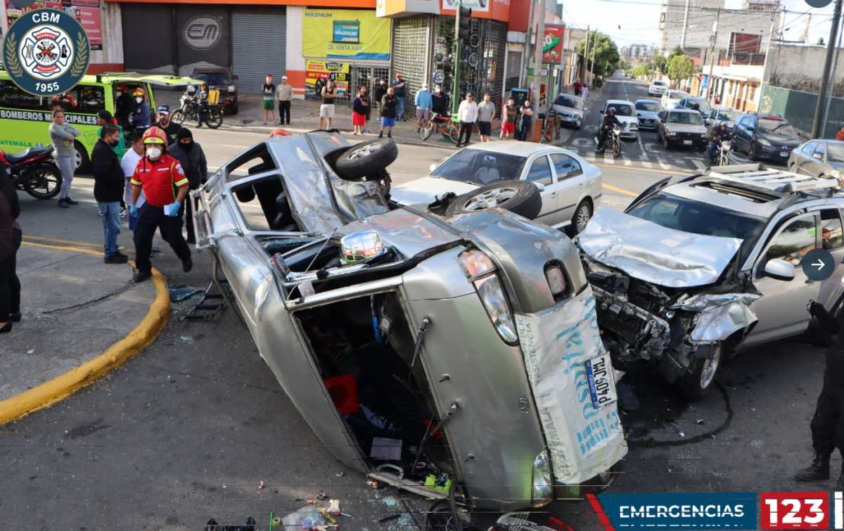 Bus provoca aparatoso accidente y queda volcado en ruta a Nueva Concepción, Escuintla
