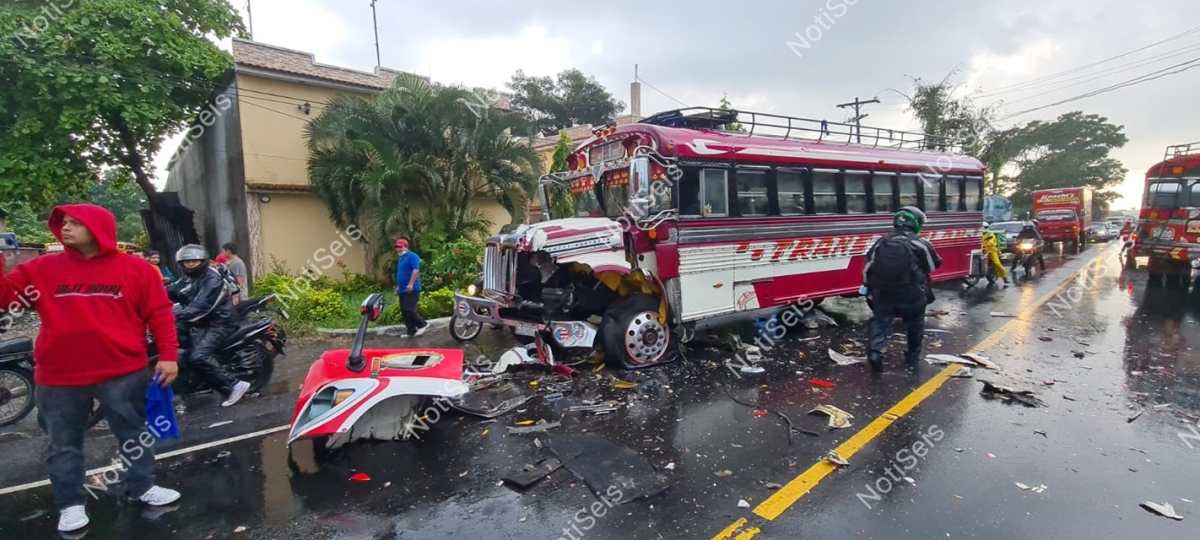 Fuerte accidente en Santa Lucía Cotzumalguapa: choque entre tres autobuses y una camioneta agrícola deja 20 heridos