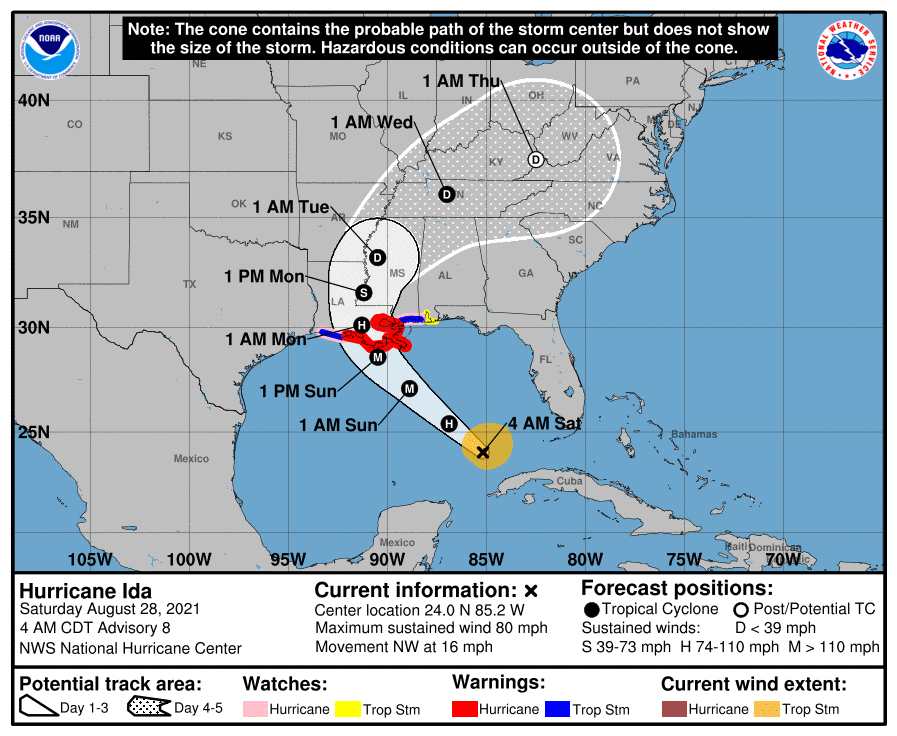 Trayectoria de Ida: huracán podría dejar “zonas inhabitables” por semanas en la costa de Luisiana
