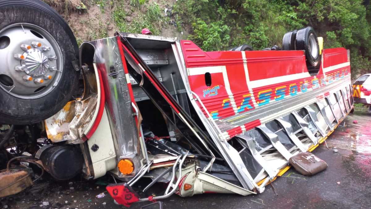 Autobús extraurbano cae a barranco y se reportan al menos un muerto y varios heridos en ruta a Santo Domingo Xenacoj