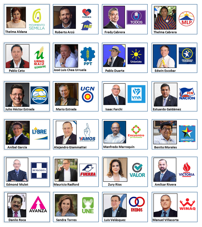 El margen de error de la Encuesta Libre 2019, desarrollada por ProDatos, es de +/- 2.8 por ciento, con un 95 por ciento de certeza. En la primera medición de los comicios de 2015, el puntero era Manuel Baldizón —del cancelado partido Líder y actualmente detenido en Estados Unidos—, con 30.1 por ciento de intención de voto, mientras que el segundo lugar era compartido por Sandra Torres y Alejandro Sinibaldi, quien ya no se presentó a la contienda electoral y actualmente es prófugo de la justicia.