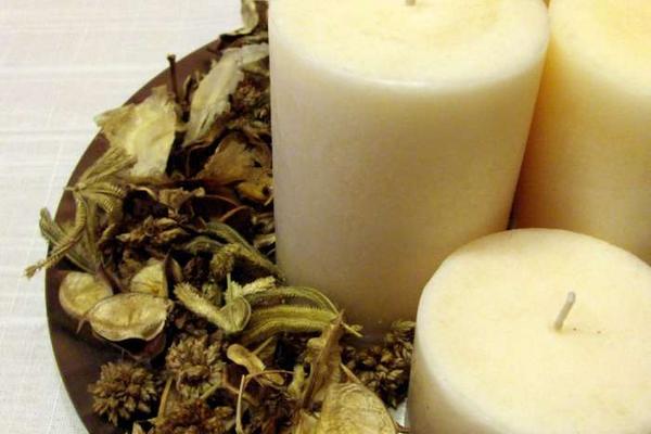 Se coloca sobre una base velas cortadas a distinto tamaño para darle vistosidad al centro de mesa.