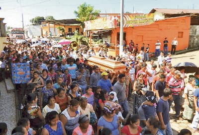 Pérez Batz, quien murió baleado la tarde del sábado último, fue homenajeado por el Concejo en el edificio municipal. El féretro fue llevado por calles de la aldea y se hacían paradas en las casas de familiares más cercanos —hermanos, tíos, y sus padres—, para luego ser llevado al cementerio local.