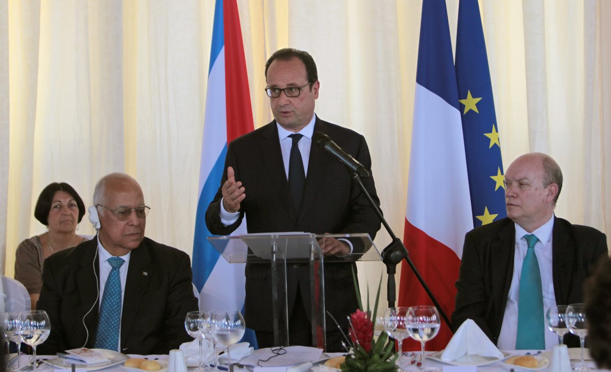 En la primera visita de un presidente francés a Cuba, Hollande también se pronunció por el levantamiento del embargo estadounidense a la isla comunista y condecoró al cardenal cubano Jaime Ortega, cuya mediación permitió la liberación de presos políticos.