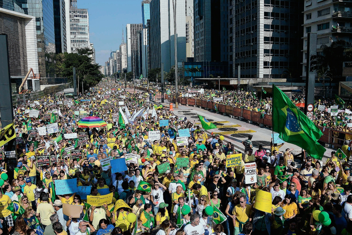 El mes pasado, en todo ese país, la Policía calculó más de 1.7 millones de manifestantes (de los cuales un millón en Sao Paulo), una cifra bastante superior a la de este domingo.