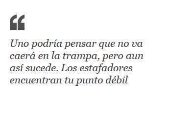 “Uno podría pensar que no va a caer en la trampa, pero aun así sucede. Los estafadores encuentran tu punto débil”, añade.
