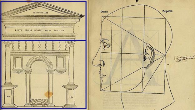 “Sin matemáticas no hay arte”, aseguró Luca Pacioli quien, en 1509, publicó “De divina proportione“, ilustrado nada menos que por Leonardo da Vinci.