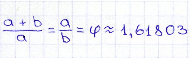 Es un número especial que se encuentra al dividir una línea en dos partes, de modo que la parte más larga (a) dividida por la parte más pequeña (b) es igual a la longitud total dividida por la parte más larga.