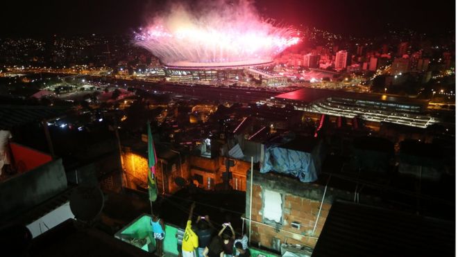 Pero no hubo referencias a las polémicas remociones de habitantes de favelas por obras para los Juegos, ni a la violencia que sufren a diario esas comunidades —aunque el director de la ceremonia fue el cineasta Fernando Meirelles, célebre por su filme Cidade de Deus sobre la guerra de narcos en una de las favelas de la ciudad.