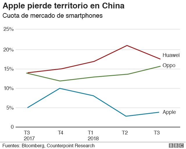 Apple no es la única compañía que tiene este problema. Los envíos mundiales de smartphones se redujeron un 5% en 2018, según datos de Canalys, una firma de investigación de mercados.