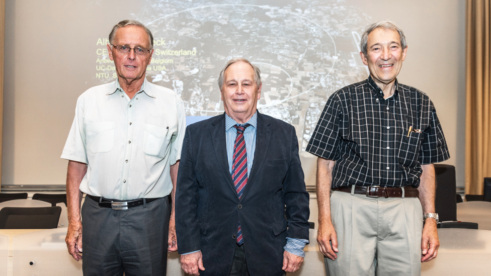 Peter van Nieuwenhuizen, Sergio Ferrara y Daniel Freedman (de izq. a derecha), en una foto tomada en CERN en 2016 con motivo del 40 aniversario de la teoría de la supergravedad. (Foto Prensa Libre: CERN)