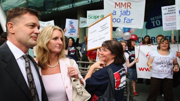 En un artículo de 1997 publicado en la prestigiosa revista médica The Lancet, Wakefield afirmó que la vacuna contra el sarampión, las paperas y la rubéola (conocida como MMR) estaba relacionada con el aumento de casos de autismo entre los niños británicos.