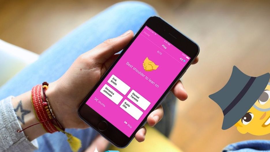 Una vez que el usuario carga sus contactos en la aplicación, TBH le hace preguntas predeterminadas, como por ejemplo: “¿Quién es el mejor para llevar a una fiesta?”, ofreciendo cuatro amigos para que seleccione a uno de ellos.